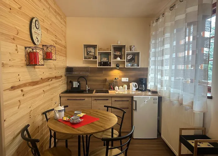 Karkonoskie Drezyny Ręczne ממוקם במרחק של 0.5 ק"מ על הדירה. המקום נמצא במרחק של 10 דקות הליכה ממרכז העיר קרפאז'. האורחים יהינו ממנות של מטבח אירופאיות ופולניות המוגשות ב-Universal, אשר נמצאת בסביבות ה-300 מטר משם. דירה זו ממוקמת ממש ליד PTTK Shelter "Nad Łomniczką".